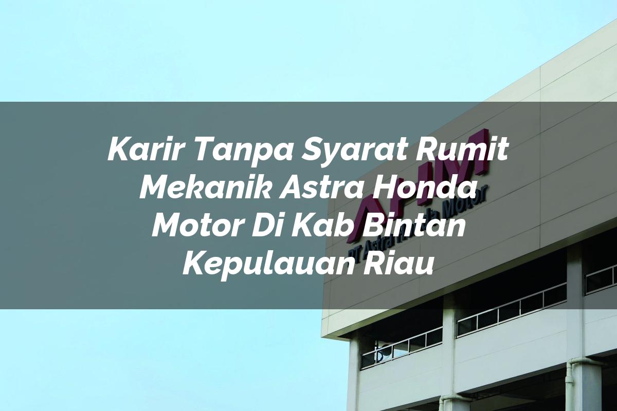 Saat ini, PT. Astra Honda Motor membuka lowongan kerja untuk posisi Mekanik di jaringan bengkel resmi Astra Honda Motor (AHASS) yang berlokasi di Kab. Bintan, Kepulauan Riau. Jika kamu memiliki passion di bidang otomotif, khususnya sepeda motor Honda, dan berdomisili di Kab. Bintan atau bersedia ditempatkan di sana, ini adalah kesempatan yang tidak boleh dilewatkan!