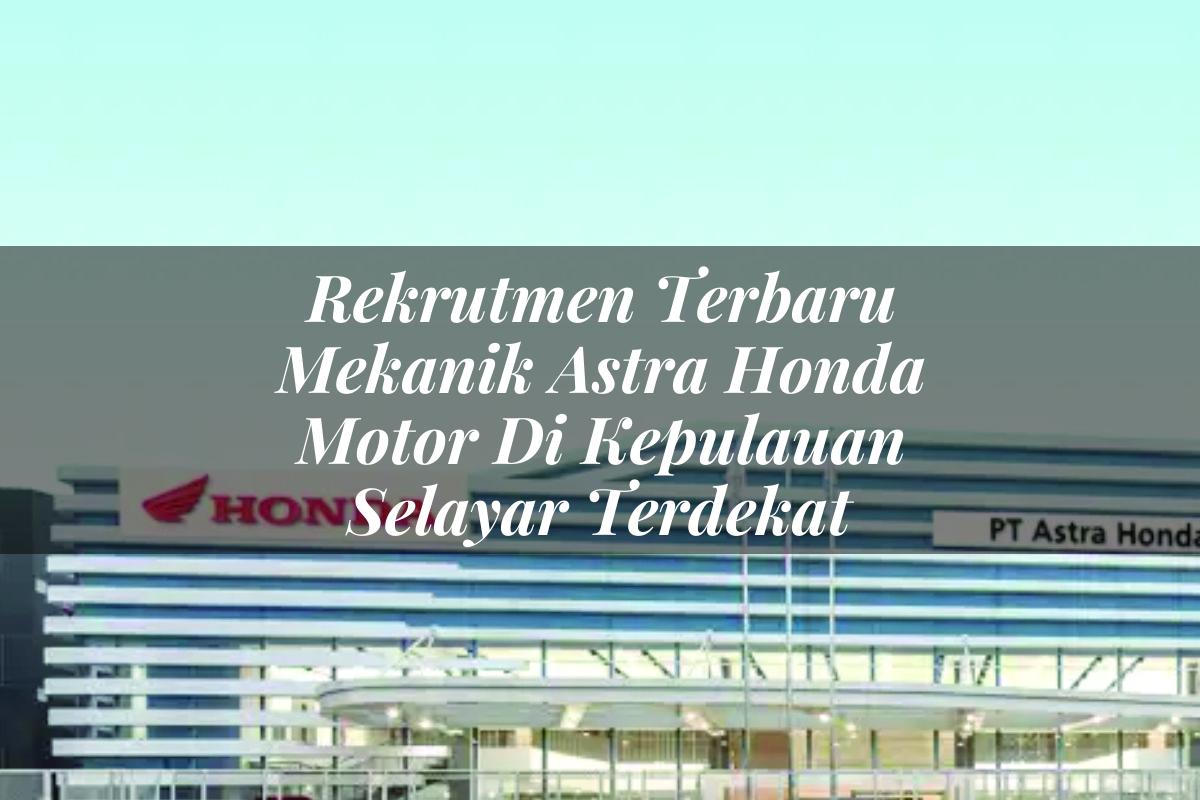 Saat ini, PT. Astra Honda Motor membuka lowongan kerja untuk posisi Mekanik di wilayah Kepulauan Selayar. Jika Anda memiliki passion di bidang otomotif dan ingin mengembangkan karir bersama perusahaan terkemuka, inilah kesempatan emas untuk Anda!